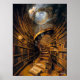 This captivating surrealist painting presents a vast, otherworldly library with an intricate spiral staircase ascending into a swirling vortex. The endless rows of books and distorted shelves create a dreamlike scene that invites viewers to explore the mysteries of knowledge and imagination. With its rich details and fantastical elements, this artwork is perfect for book lovers and fans of surrealism. Available in various formats, this piece brings a sense of wonder and intrigue to any space.
