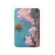 This surreal artwork captures a beautifully unexpected collision of worlds, where a lone palm tree rises from a mountain landscape beneath a pastel sky filled with towering clouds. Snow-dusted peaks stretch across the horizon, while power lines quietly anchor the scene in reality. Cutting through it all, a sleek UFO glides effortlessly through the air, adding motion, mystery, and a touch of retro sci-fi intrigue.