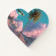 This surreal artwork captures a beautifully unexpected collision of worlds, where a lone palm tree rises from a mountain landscape beneath a pastel sky filled with towering clouds. Snow-dusted peaks stretch across the horizon, while power lines quietly anchor the scene in reality. Cutting through it all, a sleek UFO glides effortlessly through the air, adding motion, mystery, and a touch of retro sci-fi intrigue.