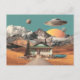 Surreal UFO Over Rustic House Postcard