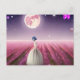 Surreal Vintage Pink Field Bride & Moon Postcard
