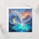Sci fi surreal puzzle. A beautiful illustration white dragon looking at a goldfish while volcanos erupt in the background.