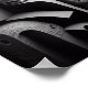 Geometric swirls on the black background, in the style of monochromatic realism, fragmented architecture, dramatic use of shadows, zigzags, hyperbolic expression, monochromatic white figures.