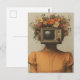Surrealist Woman with TV head and flowers Postcard