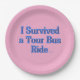 I Survived a Tour Bus Ride paper plates are for tourists, bus passengers, drivers and tour guides. I Survived a Tour Bus Ride is Steamy Raimon original concept and calligraphy art.