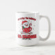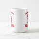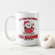A whimsical coffee cup design featuring a cheerful snowman wearing a Santa hat and holding a candy cane. The cup is bright red with festive snowflakes, embodying the spirit of Christmas.