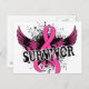 You are a Breast Cancer survivor. Wear your Victory proudly with our eye-catching Cancer Survivor t-shirts, merchandise, and apparel featuring a striking pink Breast Cancer awareness ribbon centred within a pair of distressed wings, a graffiti-splashed background, and grunge text. Empowering gift idea for the Breast Cancer survivor in your life or for a survivor anniversary.