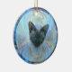This kitten didn't like her first trip to the vet! She was a rescue and was happy to have a home but adjusting to any new life can have its tough times. She's a survivor! Swirly, wavy blue -hued ornament for the holidays or any time of year for that cat-lover on your list. Add your name(s), date to the back if you like.