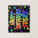 This exciting, vibrant, birthday-themed jigsaw puzzle design features the message "HAPPY BIRTHDAY, SUSAN" with the characters having a colourful rainbow spectrum inspired gradient pattern, along with a lively field of stars background pattern. An exciting puzzle like this might be a fun way to acknowledge the birthday of somebody named Susan. [~Z0000468]