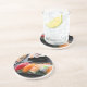 I'm not sure how much moisture these will soak up, haven't had a chance to try them out, but they look good and I like the cork backing. The printing is fine ~ and really looks cool with an artisan's hand made "Hurricane Martini" glass sitting on top of my painting (on the coaster) in my studio.