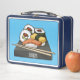 This is a standard metal lunchbox that appears to work just fine. We designed this box ourselves with an uploaded photo and custom text on the front and back. It looks absolutely beautiful except the front of the lunchbox is not centered like it shows in the photo. The print borders don't align with the inset flat part of the box where the preview photo online showed it perfectly centered in there. The back looks nice and centered though.