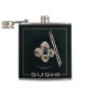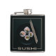 The flask itself is fine. It’s a cheap flask, obviously bought in bulk, however am prepared to overlook that. Given that it is a personalized item, I would have liked to have seen gift boxing instead of the generic packaging. Terrible printing, and/or quality. It’s a cheap, tacky vinyl. It is not cut straight and is also applied in a way that it is overhanging the bottom, causing the glue to catch on items and it will eventually roll and tear, damaging the wrap.