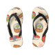 The flip flops arrived in a most colorful package which also had them double bagged in a black drawstring pouch which makes them great for gifting. They are a quality product with plenty of durability. The printing is vivid and true to that pictured on the web. Great look!
