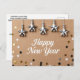 Celebrate the New Year in style with this elegant postcard design featuring a kraft-style background, shimmering silver stars, and festive gold accents. The cheerful "Happy New Year" script adds a warm, welcoming touch to your seasonal greetings. Perfect for sending heartfelt wishes to family, friends, or clients. Fully customizable for your personal or business message!