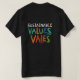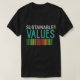 This t-shirt design promotes a commitment to a healthy planet with the phrase "Sustainable Values" displayed prominently across the front. The text utilises a vibrant multicolor scheme, with each letter a different shade that evokes elements of a sustainable future, like calming greens and blues for nature, and light yellows and oranges for renewable energy.