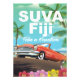 Suva, Fiji vintage vacation poster. Suva Classic old automobile travel poster. Classic car.