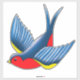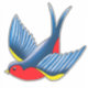 Traditional swallow red and blue tattoo art in a backdrop of black