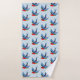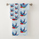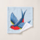 Traditional swallow red and blue tattoo art in a backdrop of blue