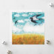 A flock of Swallows flying over a wheat field. Swallows flying over blue sky during summer season. Wild and free. - Book Illustration for a picture book 'The scarecrow and the swallow' (Written and illustrated by Julia Doria). Perfect gift for nature and bird lover.