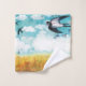 A flock of Swallows flying over a wheat field. Swallows flying over blue sky during summer season - Book Illustration for a picture book 'The scarecrow and the swallow' (Written and illustrated by Julia Doria). Perfect gift for nature and bird lover.