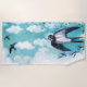 A flock of Swallows flying over a wheat field. Swallows flying over blue sky during summer season - Book Illustration for a picture book 'The scarecrow and the swallow' (Written and illustrated by Julia Doria). Perfect gift for nature and bird lover.