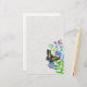 Original nature inspired artwork of a lovely European tiger swallowtail butterfly on pretty blue Forget Me Nots against a light mottled background by artist Carolyn McFann of Two Purring Cats Studio printed on stylish stationary.