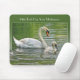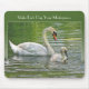 White swan with cygnet in green frame and pond water with inspirational quote.