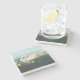 The coasters are gorgeous, a quality feel and heavy weight. They look like a precious archeological find. A rustic stone juxtaposed with a modern floral black and white print. I like the way the print goes slightly imperfect on the cut stone edges giving them a kind-of natural beauty.
