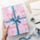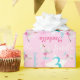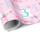 Modern text and watercolor whimsy swan personalised age birthday girls gift wrapping paper. Personalise with your own name and age, reads Isabella 3. Pretty shades of pink, aqua blue, white and purple. Other matching dancing ballerina swan items available. Background colour can be changed currently pink. A great way to give a personalised touch to special birthday gifts. Original design and whimsy swan uniquely painted in watercolor by Sarah Trett. www.sarahtrett.com for www.mylittleeden.com on zazzle.