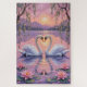 Swan Couple Heart on Pink Sunset Lake Jigsaw Puzzle
