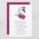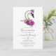 Trendy colorways swan themed quinceanera invitations featuring shades of pink, purple, plum and fuchsia with hints of gold glitter.