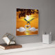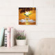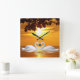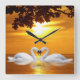 Two swans with their necks forming a heart shape on a golden sky and water background unique wall clock