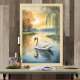 Immerse yourself in the tranquillity of nature with our stunning poster featuring a graceful swan gliding serenely across a peaceful lake. The elegant swan, with its pristine white feathers, exudes a sense of grace and beauty against the backdrop of calm waters reflecting the soft hues of the sky at dawn. The soothing colour palette of pastel blues and gentle greens creates a harmonious and peaceful atmosphere, perfect for bringing a touch of serenity to any space. Let this enchanting scene of a beautiful swan on a tranquil lake transport you to a place of calm and relaxation every time you gaze upon it.