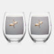 Swan Pair/Roses/Love Stemless Wine Glasses
