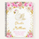 This cute and whimsical notebook features an elegant swan and pink roses floral arrangements with faux gold glitter confetti. The text combines handwritten script and sans serif fonts for a stylish and modern look. It can be personalised with your baby's birth stats, such as name, size, date and time of birth, or if you would like to give it as a shower gift you are able to edit and remove text.