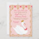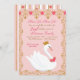 A pretty swan princess design done in shades of pink and gold. Set the stage for a fun an elegant party with this lovely swan decked out in her delightful crown surrounded by filigree and roses. The glitter used in this invitation is a pretty digital design.