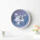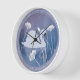 A graceful depiction of a beautiful swan gliding upon a crystaline pond is framed by wildflowers and rushes. It is accompanied by poetic words written by the artist. The clock features attractive shades of mauves and blues that would complement many interior color palettes.