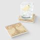 The coasters are gorgeous, a quality feel and heavy weight. They look like a precious archeological find. A rustic stone juxtaposed with a modern floral black and white print. I like the way the print goes slightly imperfect on the cut stone edges giving them a kind-of natural beauty.