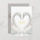 Wedding RSVP QR code card features a romantic swan design on the front along with your desired monogram. Choose a favourite photo for the back. The back of the card has elegant gold text that overlays your photo and a QR code. Use the QR code for your wedding RSVP (or another desired link). Customise the text. Add your photo. Use the template to create your own wedding RSVP QR code card.