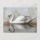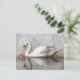 An antique-style painting of a graceful swan gazing at a blush pink flower floating on reflective water, capturing a timeless and serene beauty.