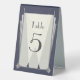 This table tent sign will bring a touch of roaring 20s glam to your wedding or other event with a steel blue background decorated with a silver toned Art Deco frame and sample text highlighted by spotlights to make the information really catch your guests' attention. Customise the sample text with table numbers or other important information, so that seating can go more smoothly at your swanky soiree. Be sure to check out the full Swanky Art Deco in Blue collection to find more products, including invitations, guest books, napkins, and even favour boxes, with matching designs that will allow for a truly coordinated wedding or special event.