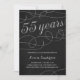 This fancy, stylish 55th birthday party invitation features elegant vintage flourishes, script calligraphy that reads "55 years," glittery faux silver foil, and a chic black background.