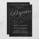 This fancy, stylish 60th birthday party invitation features elegant vintage flourishes, script calligraphy that reads "60 years," faux silver foil, and a chic black background.