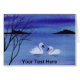 A watercolor painting of two lovely swans in the evening twilight.