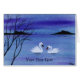 A watercolor painting of two lovely swans in the evening twilight adorns this greeting card. Customise by changing the text to suit yourself!