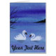A watercolor painting of two lovely swans in the evening twilight adorns this customisable greeting card. Customise by changing the text to suit yourself!