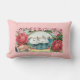 Beautiful vintage Victorian art of a pair of elegant white swans floating on a lake framed by red roses and pink forget-me-not flowers with a green art deco frame. Click Customise It to change image sizing, pillow background colours and more.