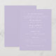 This enclosure card features a soft lavender background and white font that can be fully customized to suit your preferred color scheme. With its mix of elegant serif and whimsical handwritten fonts, this enclosure card perfectly complements any type of wedding stationery suite.