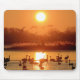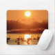Stunning and romantic scenic view of swans in silhouette on a lake at sunrise.