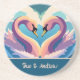This customisable coaster design features a swan couple standing head-to-head while forming a heart over magical clouds. This is a perfect design for romantic Valentine's day gift! You can customise the couple's names!